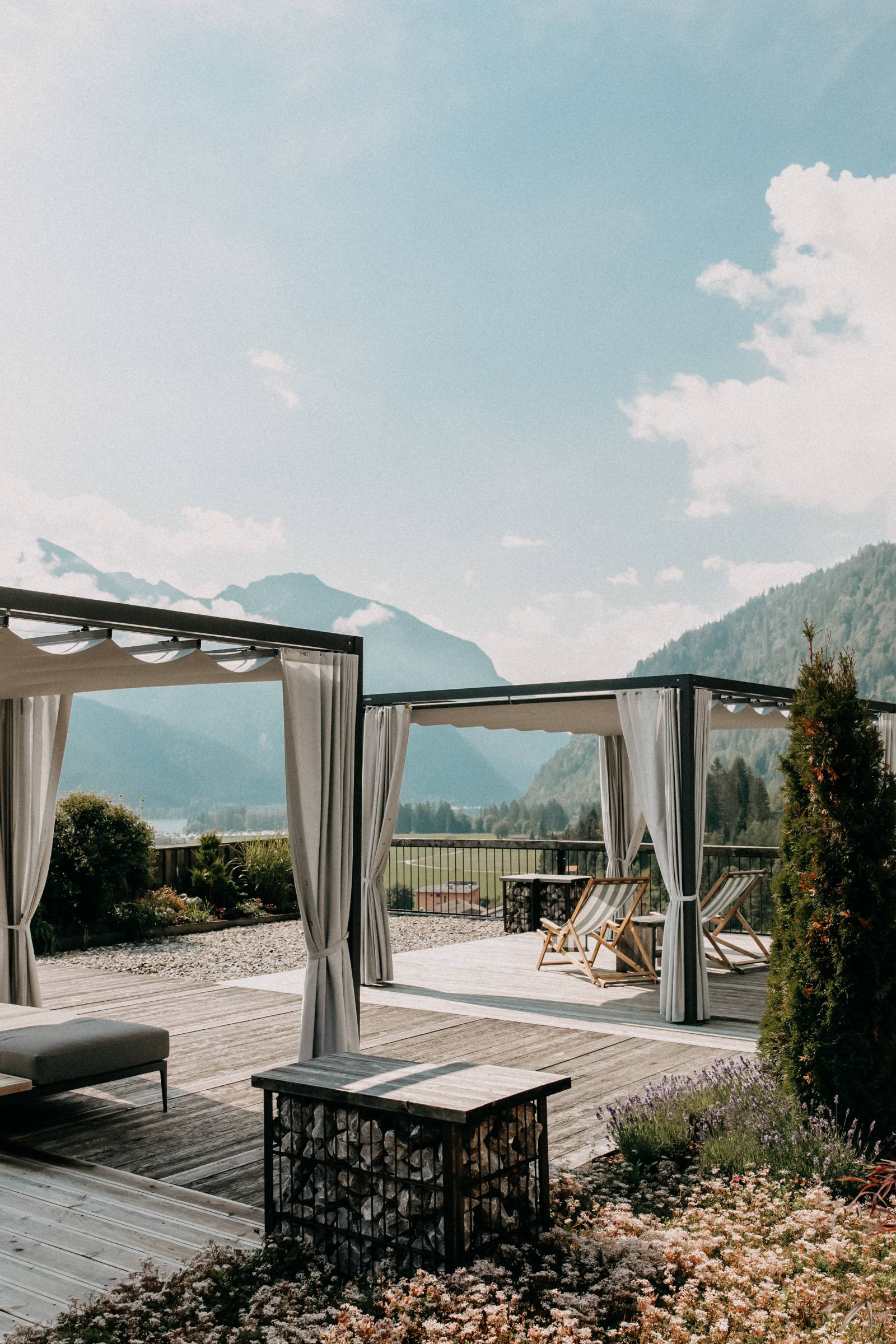 Hier scheint der makellos blaue Himmel zum Greifen nah. Mit den Bergmajestäten Rofan und Karwendel auf Augenhöhe. Den Achensee im Blick. Befreiend ist das Panorama und entspannt einladend das Flair der BAR HimmelNAH 999. Große Lesesessel. Samtweiche Chaiselongues. Kaminfeuer. Und das grandiose Sonnendeck – alles wartet am Roof-Top des Hauses darauf, dass Sie kommen und unter freiem Himmel neue Luftschlösser bauen. Fühlen Sie sich neu. Fühlen Sie sich anders. Unvergleichlich HimmelNAH. Im Alpine Lifestyle Hotel DAS KRONTHALER am Tiroler Achensee und zum Champagner-Aprés-Ski direkt an den Pisten der Christlum.