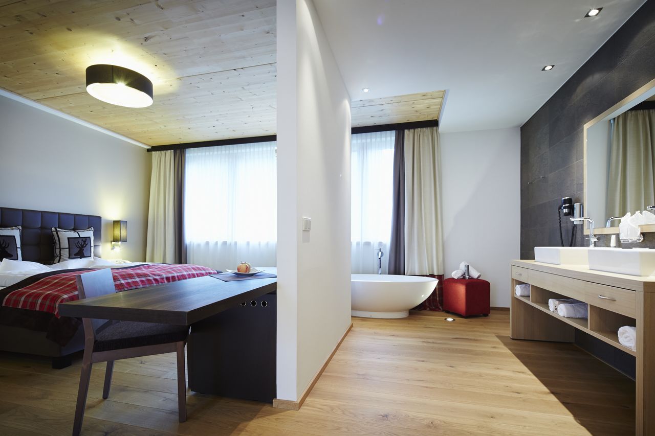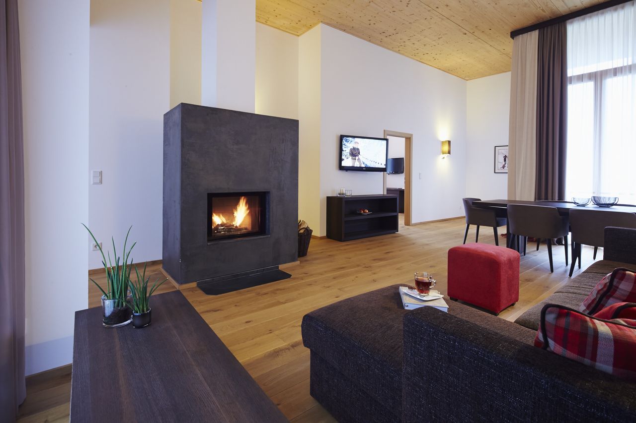 Alpine lifestyle at its best. Open fireplace, freestanding bathtub with views of the countryside. High ceilings and the safety of the surrounding mountains. This is your chalet in the Alps. This is the true DAS KRONTHALER luxury life.